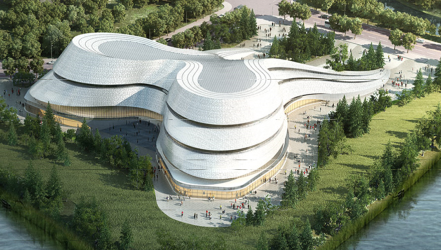 The total land area of Binhai New City Cultural and Art Center is 19542 square meters. The central buildings include Binhai Cultural Center, Binhai Library, and Cultural and Leisure Square. It is an important cultural and artistic exhibition and leisure and entertainment base as well as a city landmark in Shaoxing.