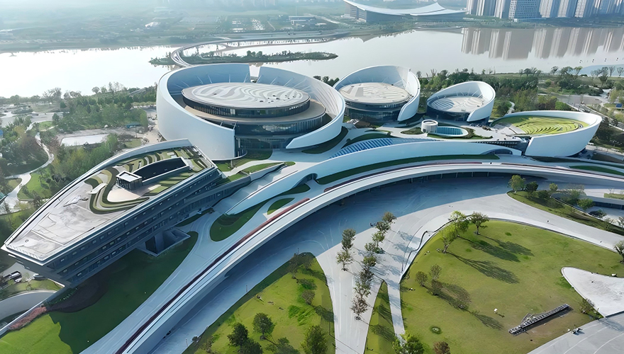CHANG‘AN YUE · The Belt and Road Cultural & Arts Centre, located in Xi'an, is a comprehensive cultural performance exchange platform for Xi'an to implement the "the Belt and Road" initiative. Its architecture looks like an open sail. The main building includes an opera house, a concert hall, a multipurpose hall, a cinema, and a media center.
