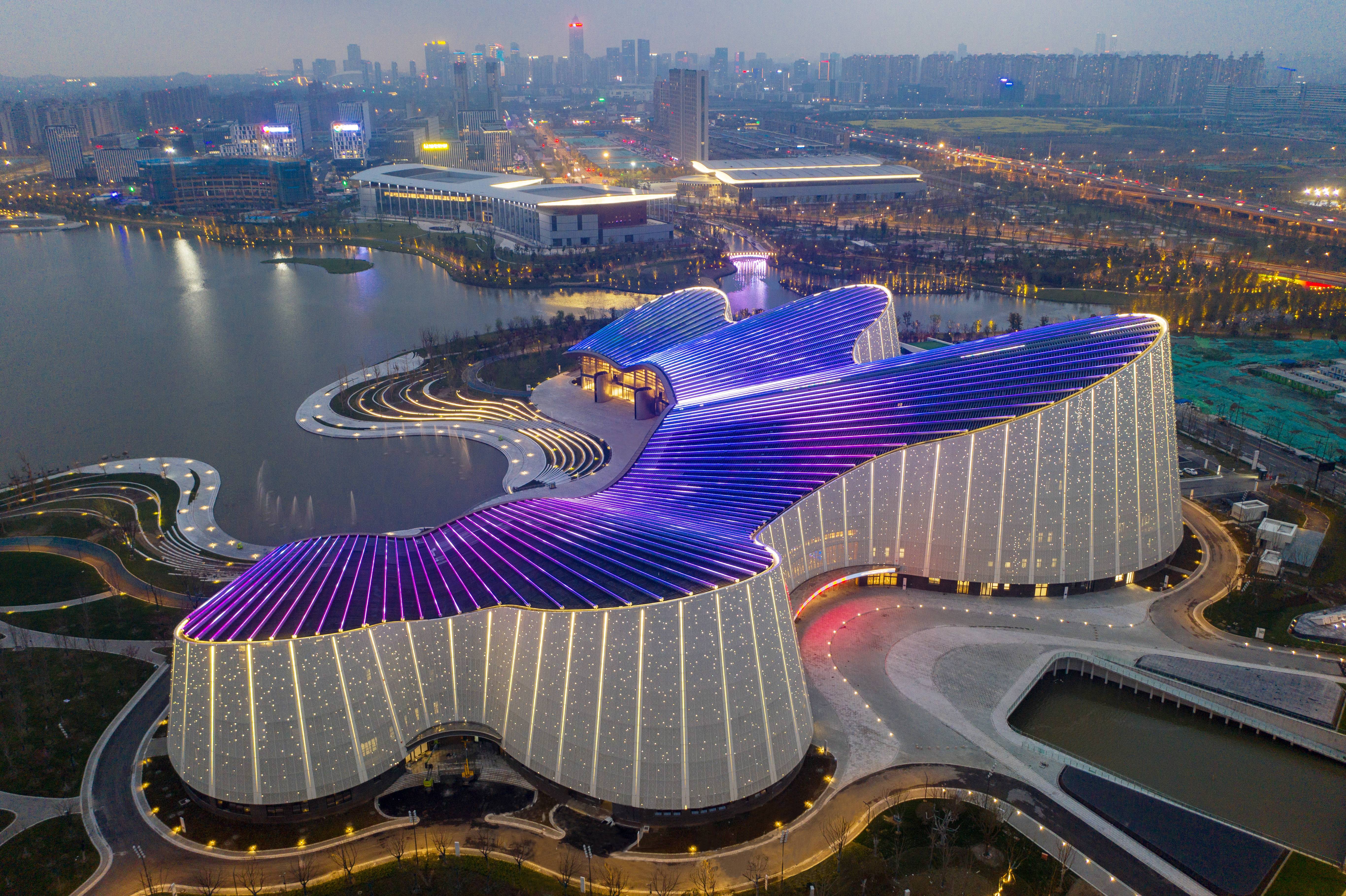 南通大劇院包含五個功能性建筑,分別是歌劇廳、戲劇廳、兒童劇場、音樂廳和多功能廳,其中戲劇廳配置了鼓筒轉臺,內設升降臺,可實現舞臺多維空間的場景變換。