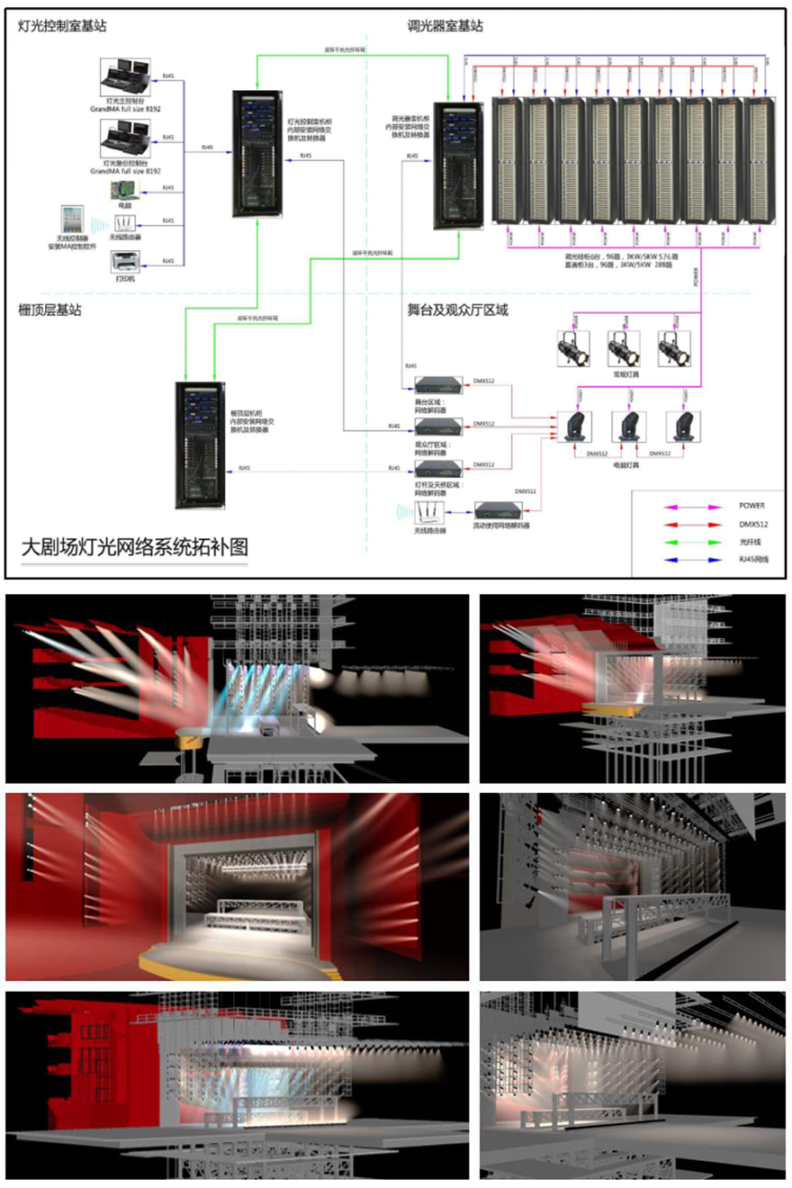 ①系統(tǒng)工藝設(shè)計和設(shè)備配置具有綜合劇場的使用功能,在2h內(nèi)可輪換不同劇中的燈光操作方案。