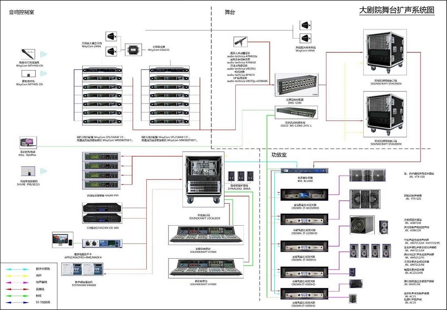 擴(kuò)聲系統(tǒng)設(shè)計(jì)要充分體現(xiàn)出方案的遠(yuǎn)瞻性、先進(jìn)性、科學(xué)性、安全可靠性、實(shí)用性和時(shí)代的特征,對(duì)有些劇院還要充分注意到與"國(guó)際接軌"的使用需要。要依據(jù)劇院的使用功能定位,給出具有針對(duì)性的系統(tǒng)設(shè)計(jì),體現(xiàn)出不同的風(fēng)格與特點(diǎn)。使之所建立的擴(kuò)聲系統(tǒng),為表演藝術(shù)提供一個(gè)功能齊全、設(shè)備完善、現(xiàn)代化的使用手段。
